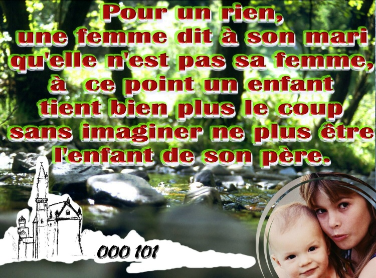 Pour un rien, une femme dit à son mari qu'elle n'est pas sa femme, à ce point un enfant tient bien plus le coup sans imaginer ne plus être l'enfant de son père.