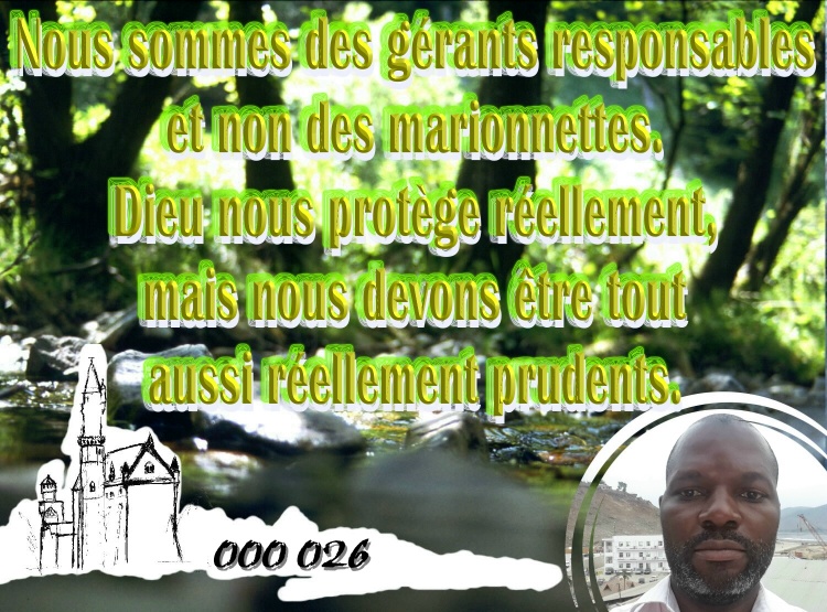 Nous sommes des gérants responsables et non des marionnettes. Dieu nous protège réellement, mais nous devons être tout aussi réellement prudents. La politique du tout ou rien - Dieu me protège alors il ne peut rien m'arriver ou Dieu ne fait rien alors on doit se débrouiller tout seul - ne tient pas devant la sagesse de l'Ecriture et les multitudes de témoignages traversant l'histoire et provenant de tous les continents. Faire notre part ou notre possible en comptant sur Dieu pour l'impossible semble plus proche d'une attitude biblique.