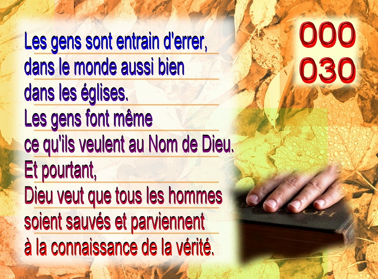 Les gens sont entrain d'errer, dans le monde aussi bien dans les églises. Les gens font même ce qu'ils veulent au Nom de Dieu. Et pourtant Dieu veut que tous les hommes soient sauvés et parviennent à la connaissance de la vérité.