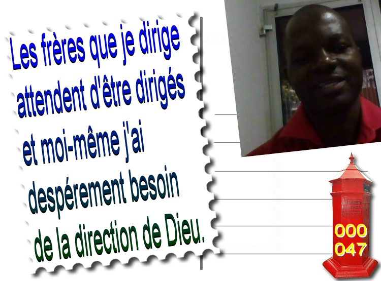Les frères que je dirige attendent d'être dirigés et moi-même j'ai despérement besoin de la direction de Dieu.