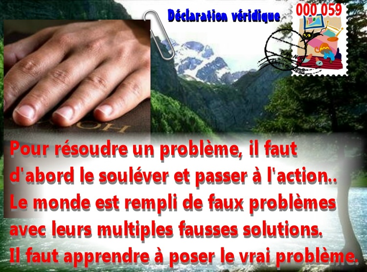 Pour résoudre un problème, il faut d'abord le souléver et passer à l'action.. Le monde est rempli de faux problèmes avec leurs multiples fausses solutions. Il faut apprendre à poser le vrai problème.